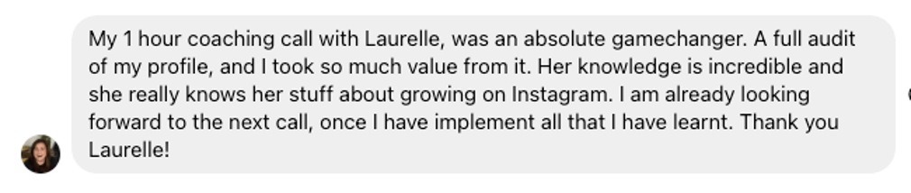 During our 1:1 session, I’ll do more than just audit your account. I’ll start by asking about your business, your goals, and the challenges you’re facing on Instagram. This helps me tailor our time together so that it’s focused on what matters most to you and what moves the needle in your business.