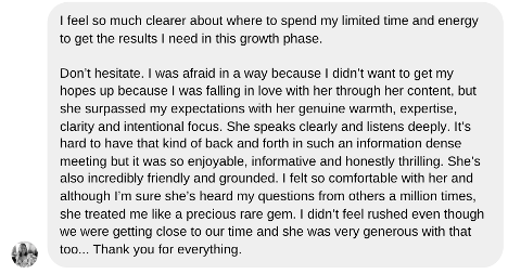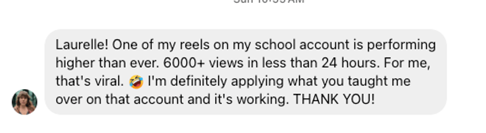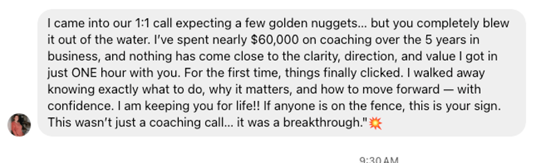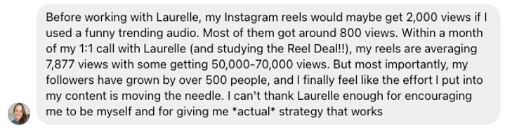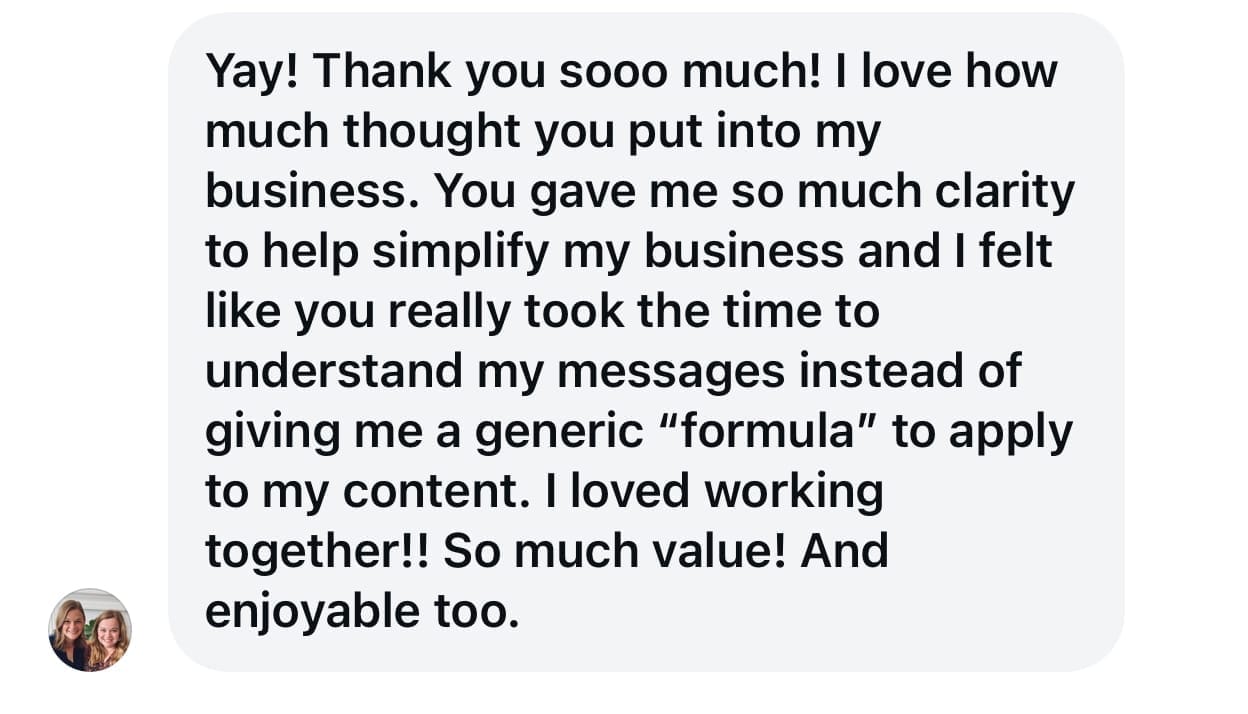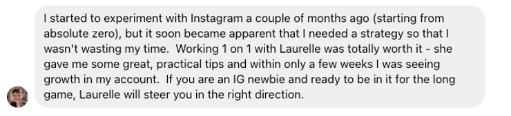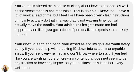 Whether it’s your content strategy, branding, messaging, reels, stories, or anything else you need help with, I’ll help you get clear on the next steps.
